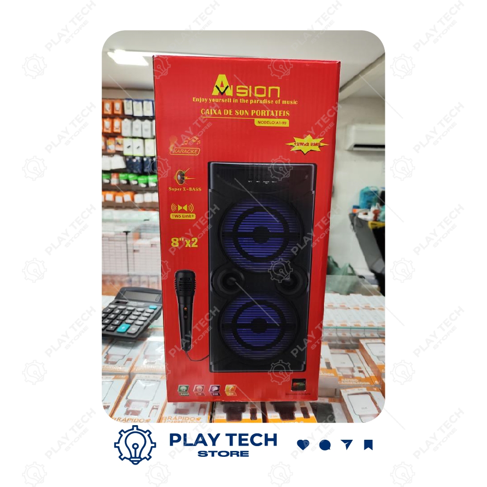 Transforme qualquer ambiente em uma verdadeira festa com a Caixa de Som Avision A1-99 ! 🎶 Com 30W de potência real , conexão Bluetooth 5.0 , microfone incluso e rádio FM integrado , ela é ideal para casa, escritório, churrasco ou eventos ao ar livre.