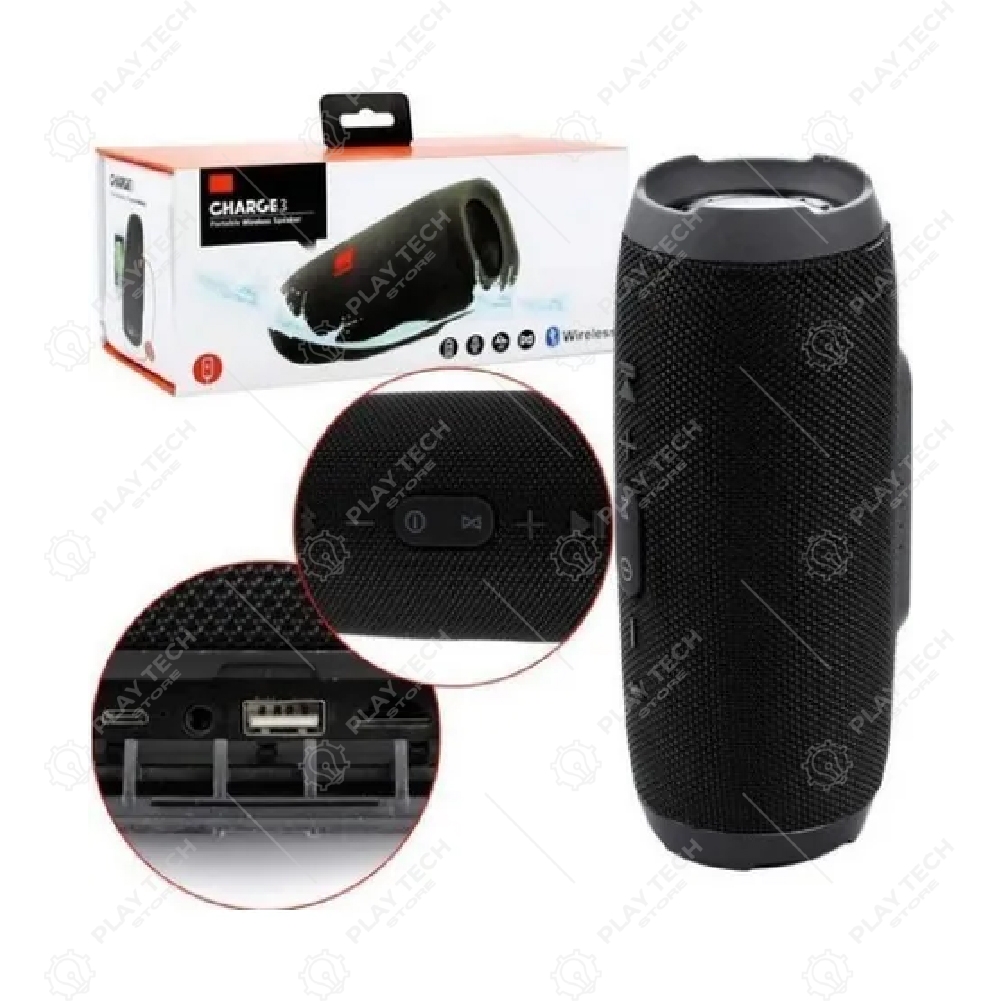 A Caixa de Som Bluetooth Charge 3 é a combinação perfeita entre potência e praticidade! Com 20W de potência RMS , esta caixa de som portátil oferece graves profundos e áudio claro, ideal para uso doméstico, eventos leves ou até mesmo como apoio em apresentações informais. Equipada com conexão Bluetooth , rádio FM integrado , entrada USB e bateria recarregável , ela traz liberdade total para você curtir sua música onde quiser.