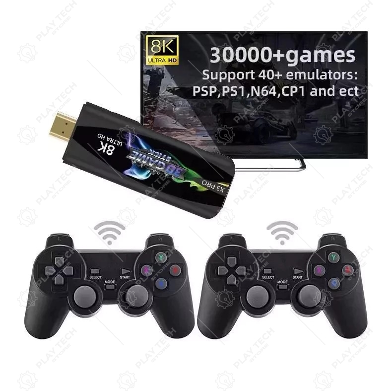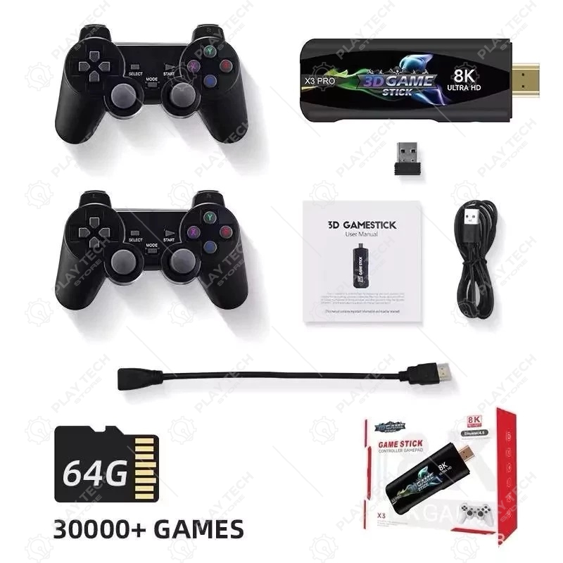 O Console Game Stick X3 Pro Ultra HD 8K é a evolução dos consoles retrô! Com 64GB de armazenamento interno , este stick transforma sua TV em uma máquina de jogos clássicos e modernos, graças ao sistema Emuelec 4.3 , capaz de rodar mais de 50.000 jogos pré-instalados de diversas plataformas.