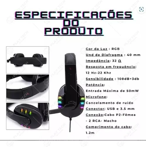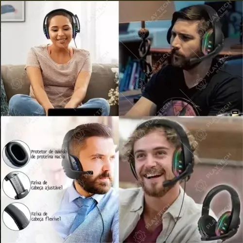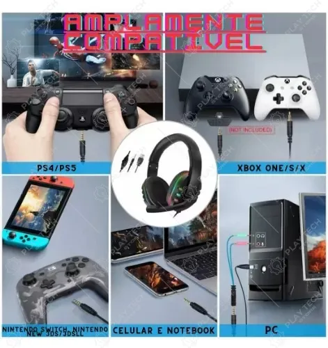 Eleve sua experiência gamer com este headset incrível! 🎮 Conta com som estéreo de alta qualidade , microfone com cancelamento de ruído e iluminação RGB personalizável . Compatível com PS4, PS5, XBOX, PC e smartphones. ✨