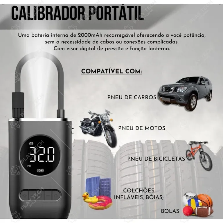 O Mini Compressor Digital Tippi é uma bomba de ar elétrica portátil , perfeita para calibrar pneus de carros, motos, bicicletas, bolas, boias e colchões infláveis . Equipado com visor digital integrado , ele permite que você monitore com precisão a pressão em diferentes unidades: PSI, BAR, KPA e kg/cm² – garantindo segurança e eficiência na hora de encher ou calibrar qualquer objeto.