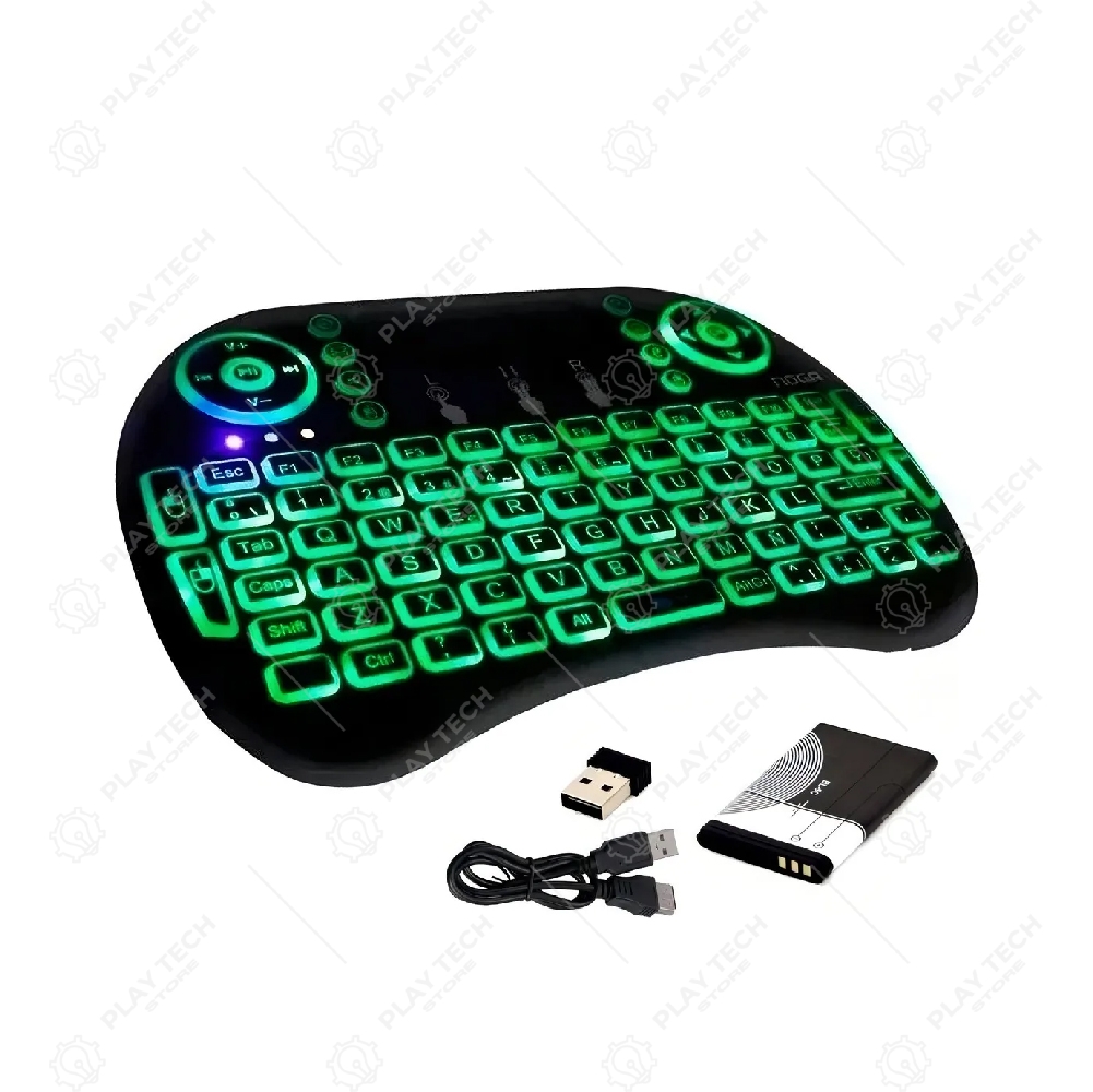O Mini Teclado Mine Controle com Luz de Fundo é uma solução prática e versátil para quem busca praticidade ao controlar dispositivos como Smart TVs, Boxes Android, PCs, Notebooks ou até mesmo consoles com suporte USB/Bluetooth . Equipado com teclas iluminadas , touchpad integrado e conexão sem fio via Bluetooth ou adaptador 2.4Ghz , este teclado permite que você controle seu aparelho com agilidade e conforto, mesmo em ambientes com baixa luminosidade.