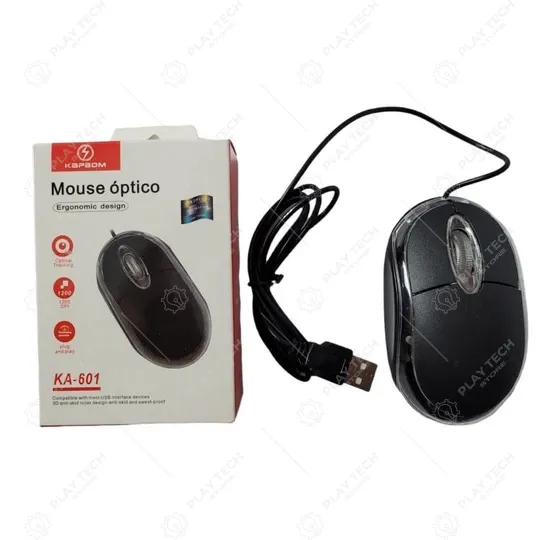 Tenha mais conforto, velocidade e estilo com o Mouse Óptico KA-601 da Kapbom ! 🖥️ Equipado com tecnologia óptica de alta precisão , design ergonômico , iluminação LED estilosa e peso ultraleve de 200g , ele é perfeito para trabalho diário, navegação rápida e uso doméstico .