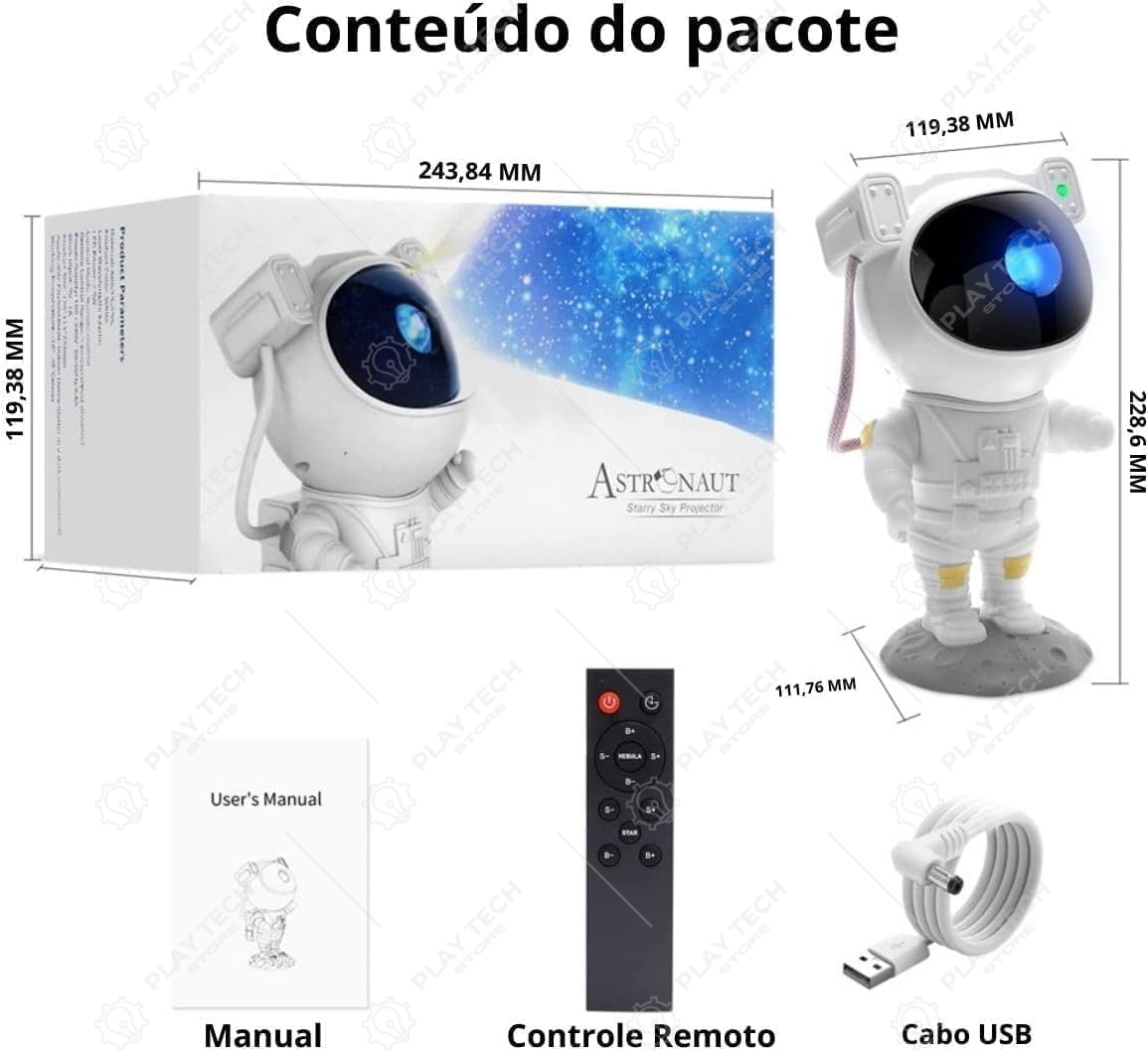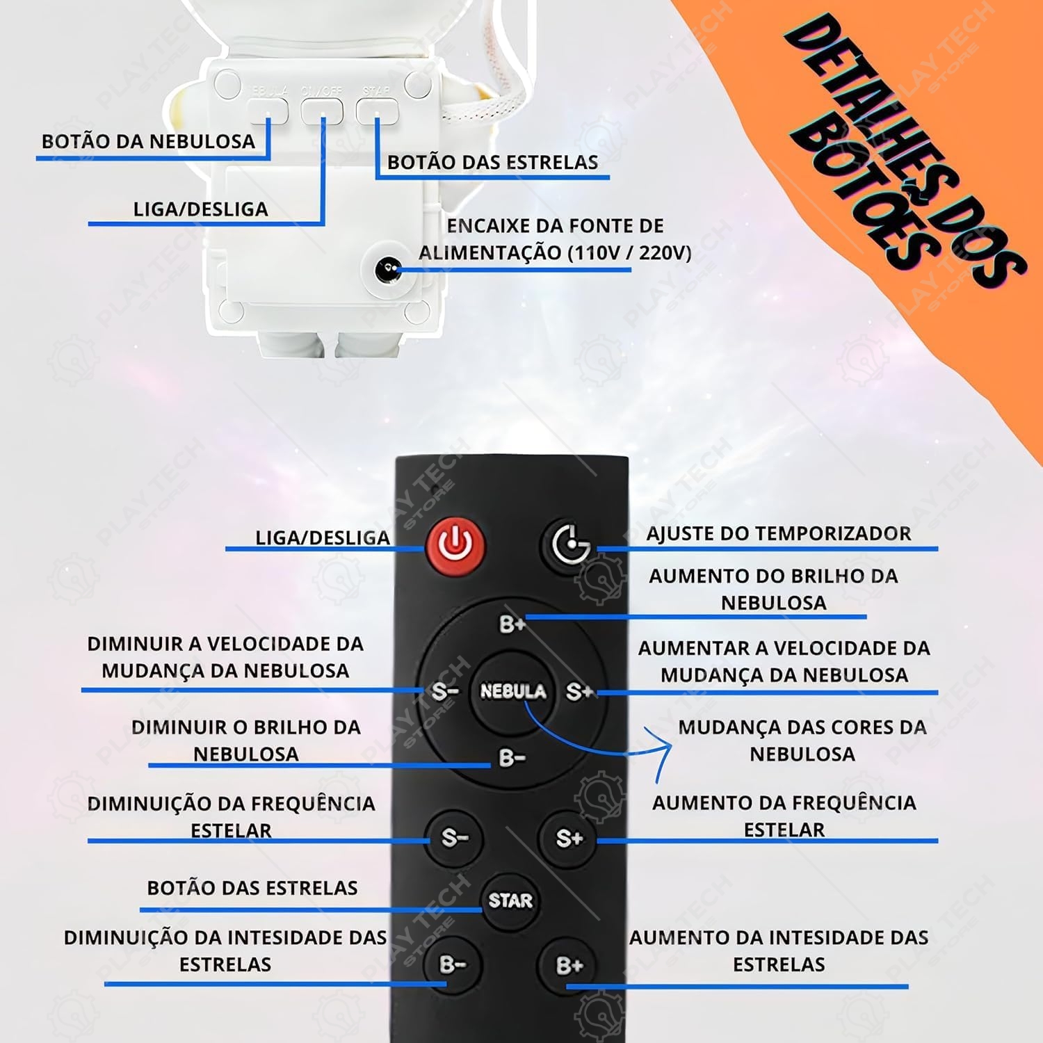 Transforme seu ambiente em um céu estrelado mágico! 🎮 Design de astronauta, controle remoto e temporizador automático. Perfeito para relaxar, decorar ou presentear. ✨