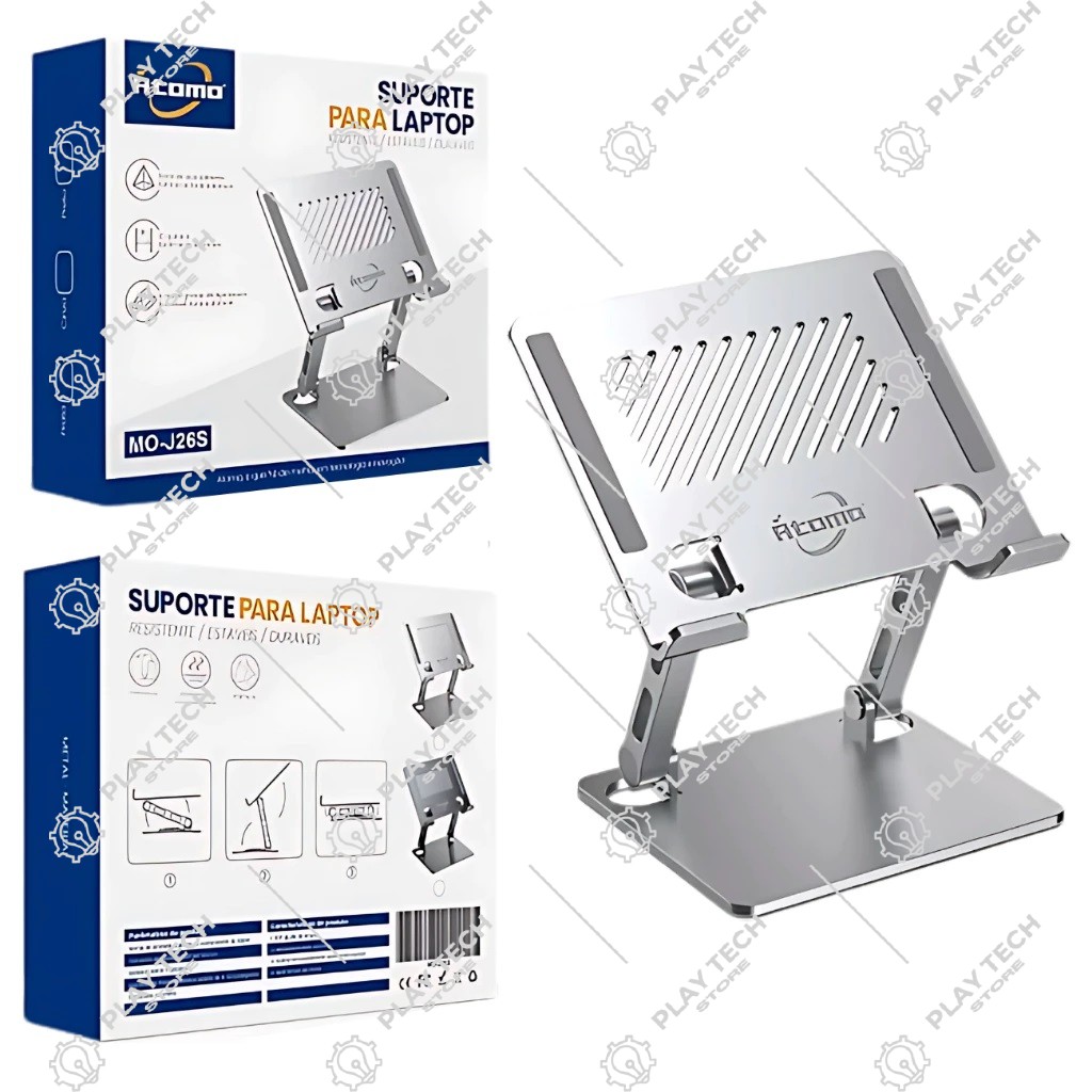 Eleve seu dispositivo e melhore sua produtividade com o Suporte de Mesa Ajustável em Alumínio ! 📑 Equipado com apoio antiderrapante , ajuste de ângulo de 180° e estrutura leve de 560g , ele é compatível com tablets, iPads, notebooks e MacBooks de 4″ a 15.6″ .