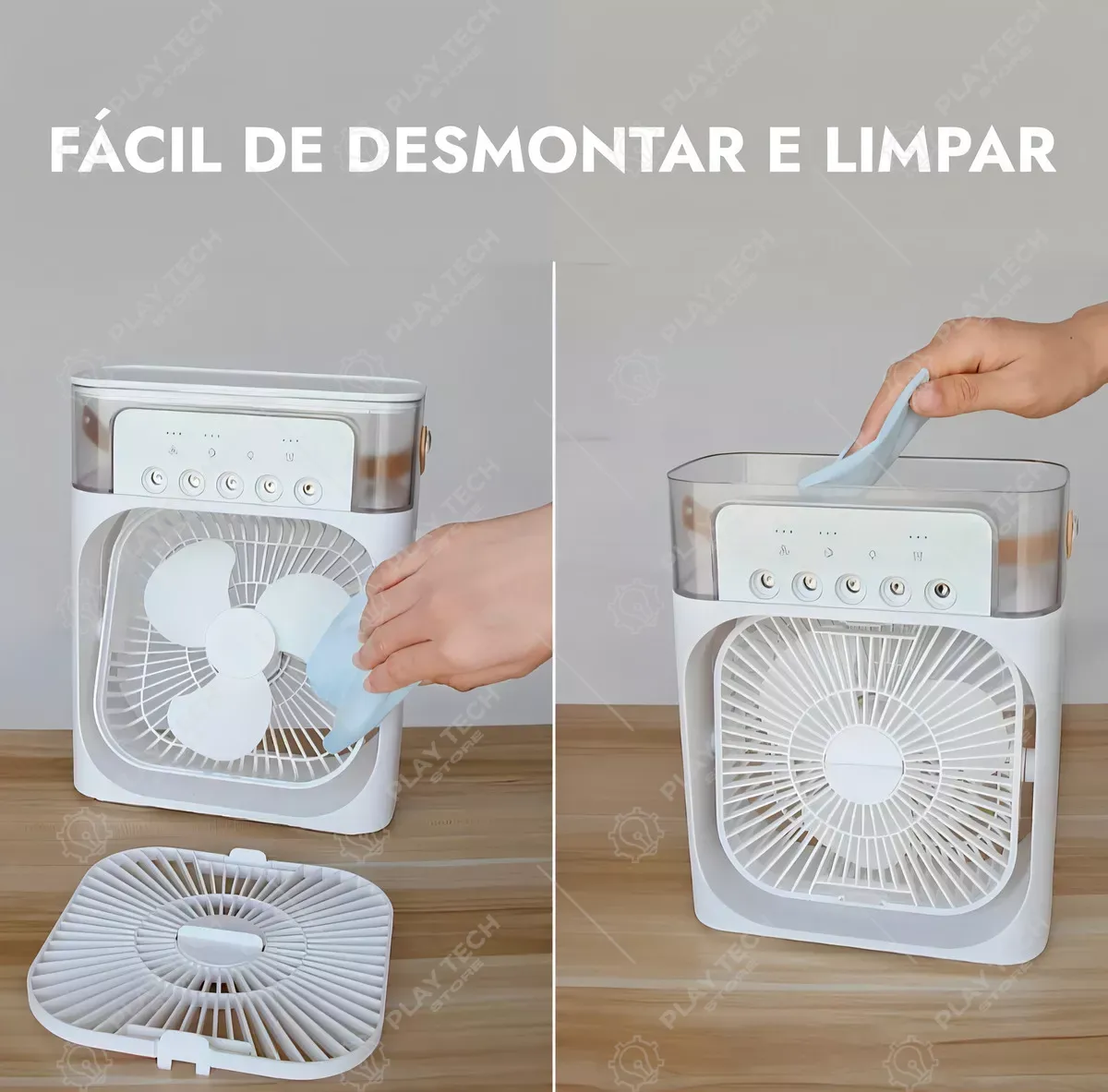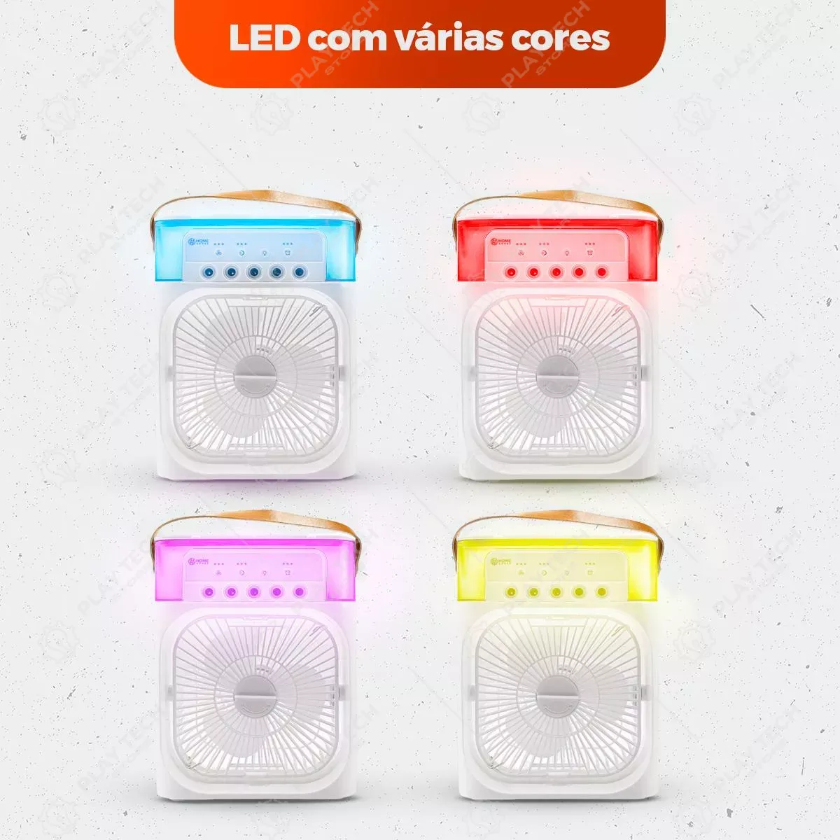 Ventilador Portátil com Iluminação LED e Umidificador – Climatizador Compacto, 3 Velocidades, Cor Variada (SKU: VP-UMIDLED)