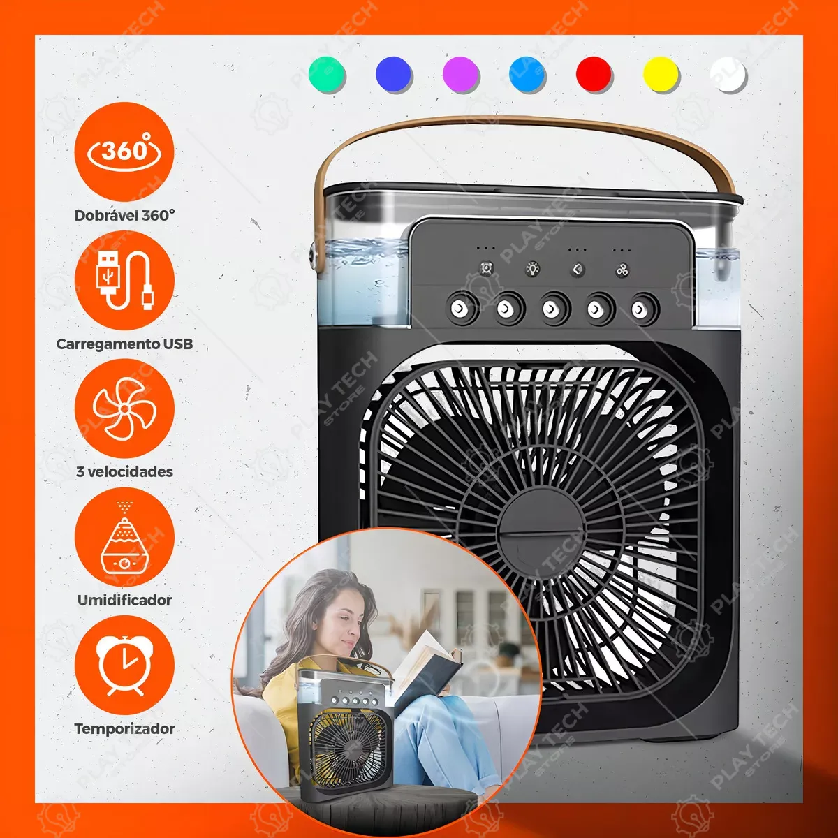 Ventilador Portátil com Iluminação LED e Umidificador – Refresque e Decore Seu Ambiente com Estilo